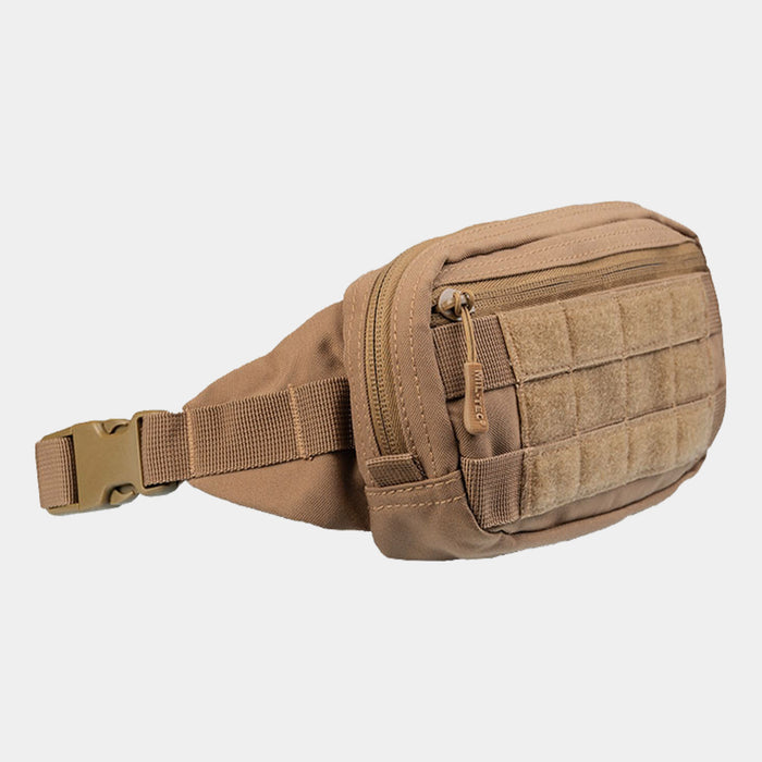 Tactische heuptas van het Duitse merk MILTEC, aan de voorkant is er een ruimte waar we zowel patches als andere elementen kunnen plaatsen via het MOLLE-systeem. Het beschikt over twee zakken, de belangrijkste heeft een dubbele rits en elastieken aan de binnenkant voor een perfecte organisatie. De heupriem is verstelbaar met twee schuifgespen.