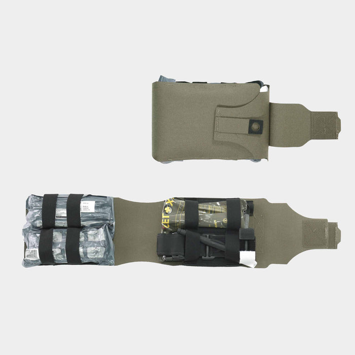 Este botiquín a diferencia de su hermano pequeño el IFAK small horizontal dispone en su parte interna de dos zonas con elásticos para portar el marterial médico que necesitemos, esta mayor capacidad nos permite incluir equipamiento extra que pudiera servirnos en alguna situación.