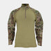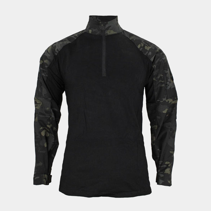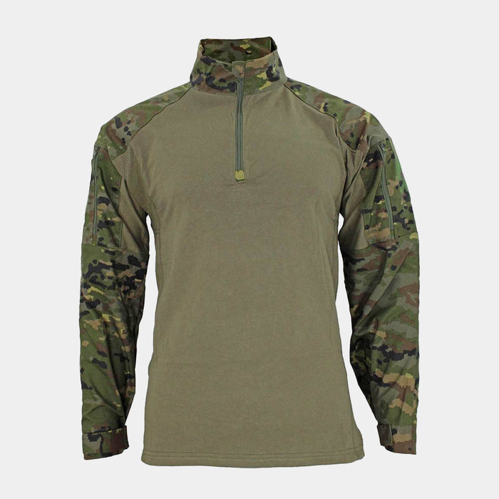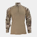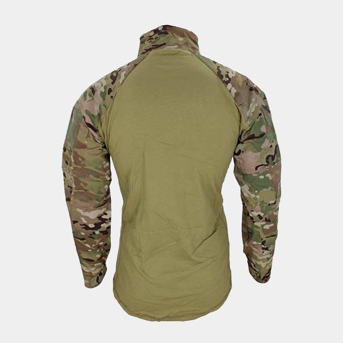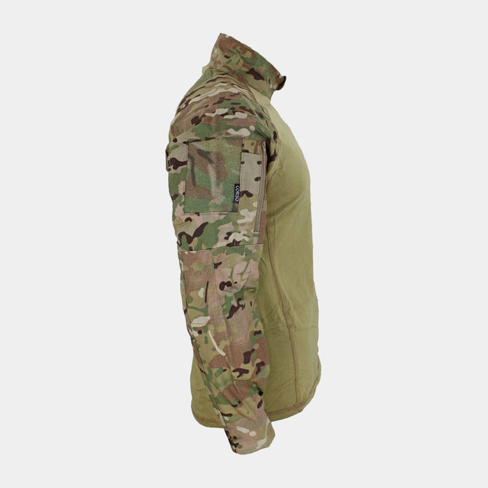 El área del torso está confeccionada en algodón para mejorar la transpirabilidad y la comodidad, especialmente cuando se usa junto con un chaleco antifragmentos o un chaleco portaplacas. Los hombros y las mangas están hechos de poliéster para ofrecer mayor resistencia y durabilidad.