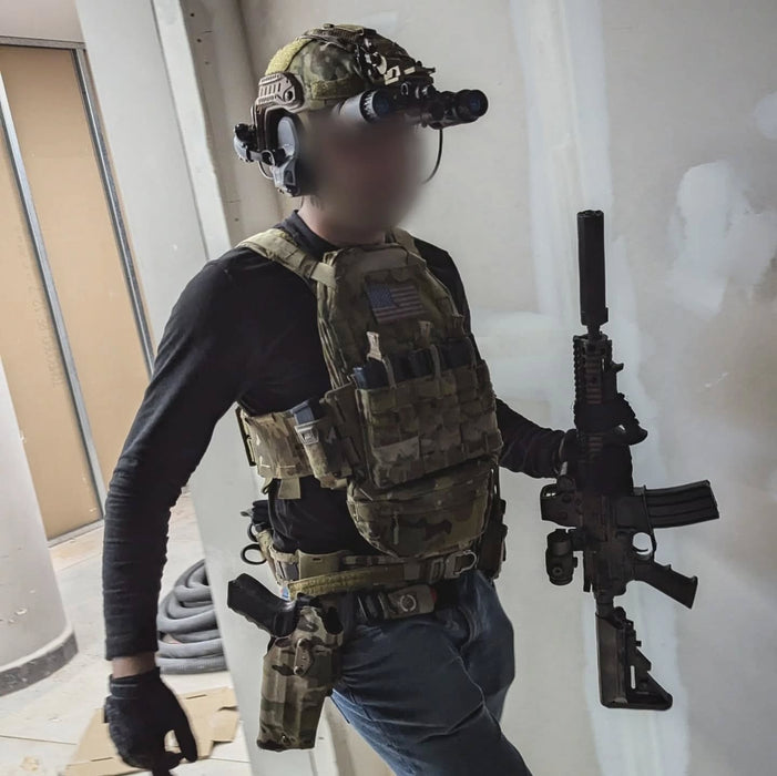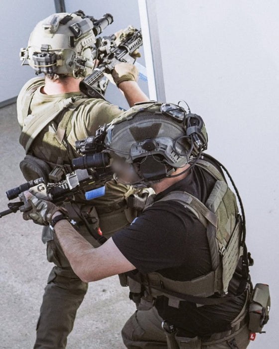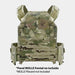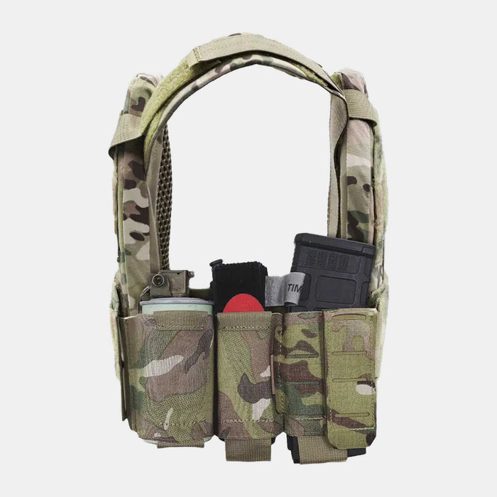 Las bandas laterales son elásticas y permiten integrar fácilmente hebillas de liberación rápida. Además, los cummerbunds incluyen 3 compartimentos para portar cargadores de calibres 5.56 o 7.62, radios, torniquetes, granadas flashbang, entre otros accesorios. También es posible acoplar accesorios adicionales gracias a las dos columnas de MOLLE laser-cut integradas.