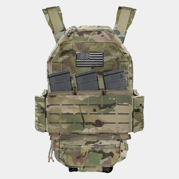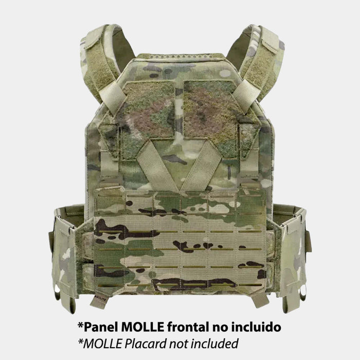 La parte trasera del portaplacas Sub Zero es compatible con paneles traseros. Está diseñado para usarse junto con el Agilite MOLLE Placard, aunque también permite acoplar cualquier otro panel estándar.