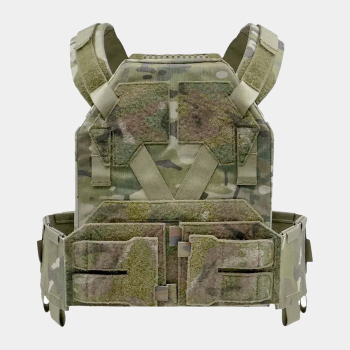Según la marca, este es el portaplacas más cómodo del mercado, con un peso de tan solo 0,57 kg (1.26 lb). Es compatible con placas de corte Shooter o tirador, SAPI, ESAPI y Swimmer. Las dimensiones máximas de las placas, según la talla, son las siguientes: