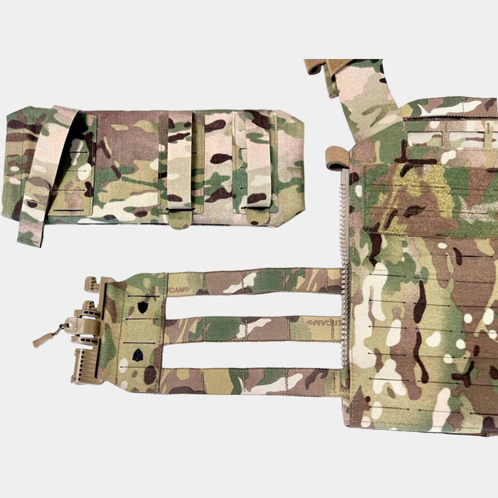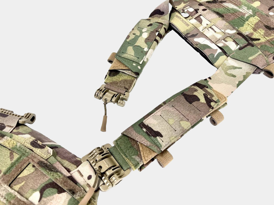 Las bandas laterales son modulares, ya que podemos llevarlas unicamente con las tiras molle o podemos acoplarle las fundas para protección balística Viking Soft Armor bag que incluye. Esta va directamente acoplada mediante sistema molle a las bandas laterales.