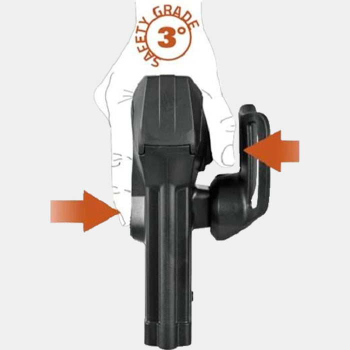 La funda DCH8 con nivel de retención 3 es una funda antihurto de la marca italiana Vega Holster está fabricada en polímero moldeado por inyección de gran calidad.