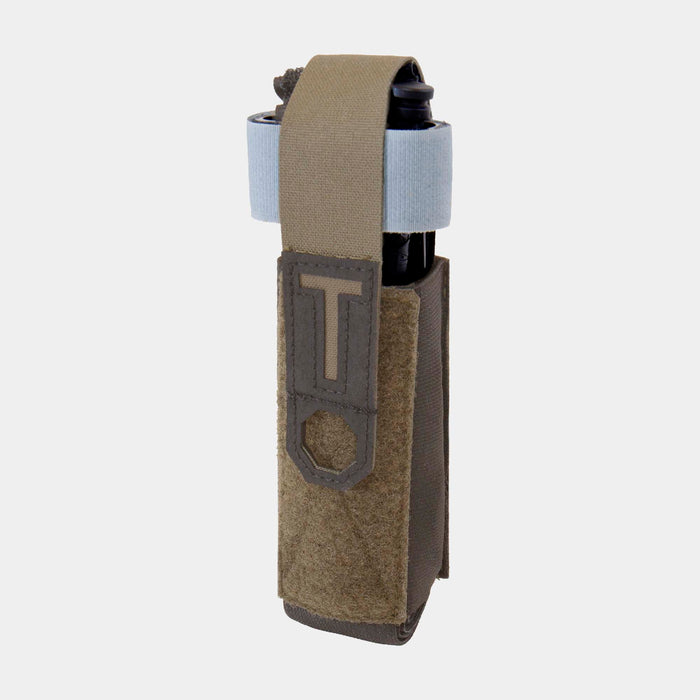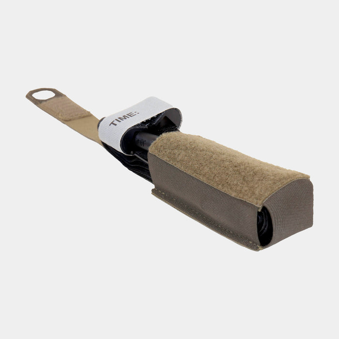 El diseño es compatible con la mayoría de torniquetes del mercado, incluyendo los tipo CAT y SOFFT, ya que es ajustable tanto en altura como en anchura. La solapa superior cuenta con un enganche del velcro en la parte frontal que asegura el torniquete y nos permite un acceso rápido al mismo. Crucial en momentos de emergencia.