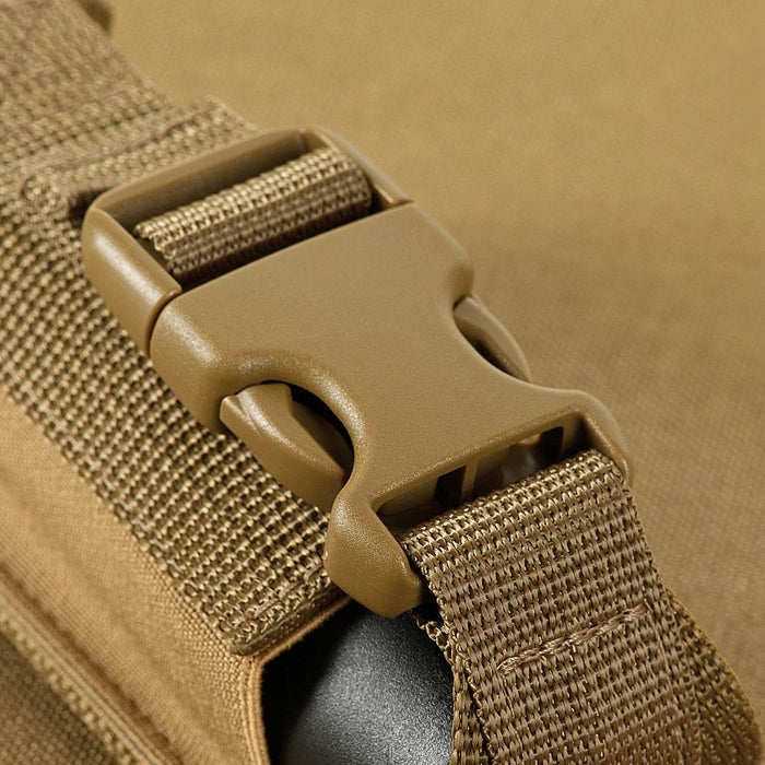 La funda porta granadas gas can pouch vertical de la marca ucraniana M-TAC está fabricada en materiales MILSPEC y hebillas Woojin que nos aseguran una gran durabilidad. Se ajusta en altura de una manera sencilla gracias a la tira frontal que se adapta mediante la hebilla de la que dispone.