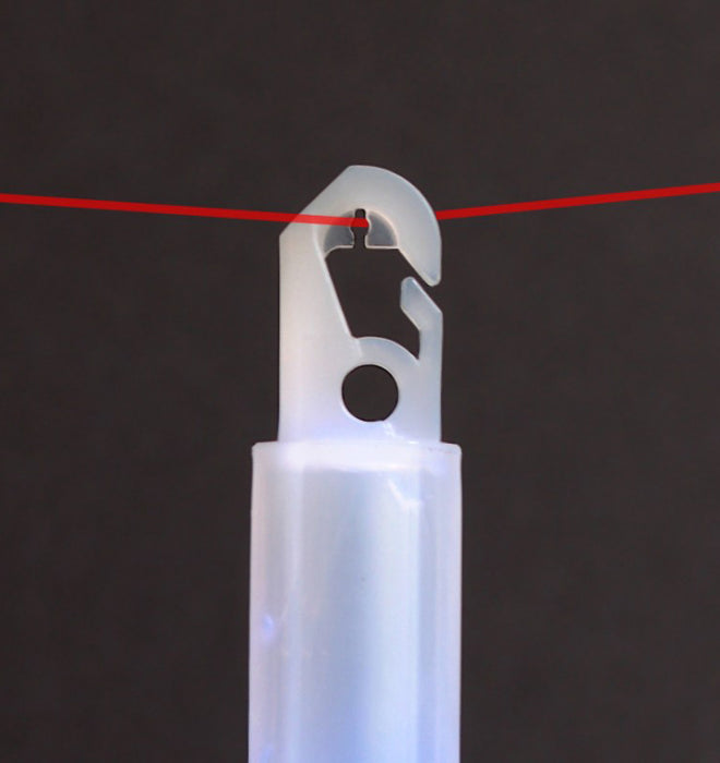 La luz química Cyalume chemlight cuenta con un pequeño gancho en la parte superior para poder anclarlo a un panel molle, a un trozo de cuerda, alambre, etc. Dispone de un diseño hexagonal para evitar que ruede en superficies inclinadas.