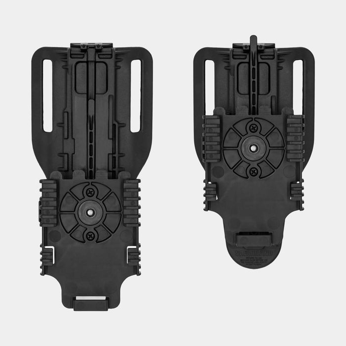 La plataforma QUBL (QLS Universal Belt Loop) de Safariland es una solución versátil y robusta que permite al usuario ajustar fácilmente la altura de la funda entre tres posiciones (baja, media y alta) sin necesidad de herramientas, adaptándose en segundos a diferentes situaciones operativas o preferencias personales.