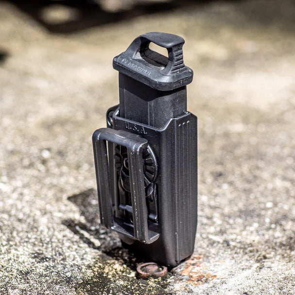 Está fabricado en polímero moldeado por inyección, cuenta con un clip que se puede rotar 360º para anclar directamente el portacargador a nuestro cinturón, además es compatible con cualquier accesorio rotatorio de Vega Holster. No es compatible con los cargadores de la HK USP Standard.