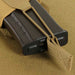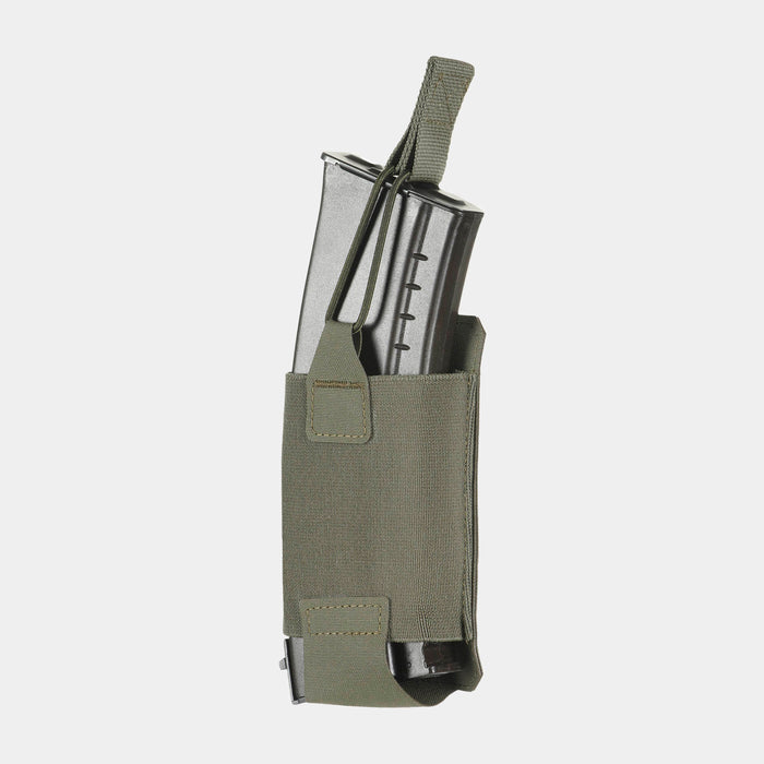 Gracias a su diseño elástico es compatible con la mayoría de cargadores de fusil del mercado, aunque están diseñados principalmente para cargadores de AK/AR. En la parte superior cuenta con una tira elástica que sirve de seguro para evitar que el cargador se salga del porta cargador de manera accidental.