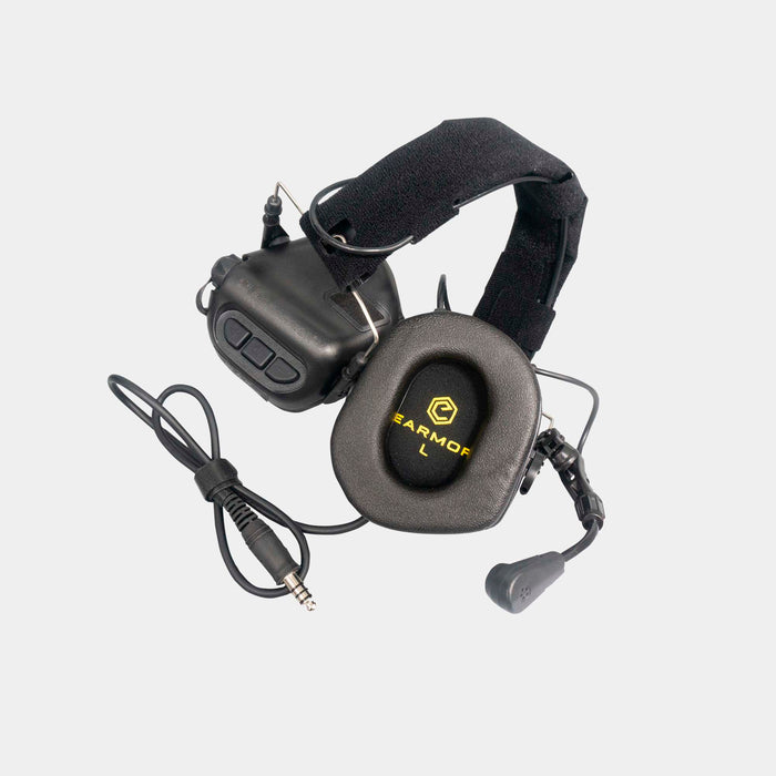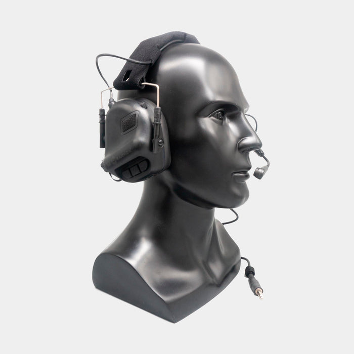 El enchufe incorporado es el NATO Military Standard 7,0 para PTT (Push To Talk) que no puede usar PTT Elemen o Z-Tactical. Puede usar Earmor PTTs o TCI/Nexus PTTs. El micrófono es desmontable y podemos montarlo a ambos lado del auricular.