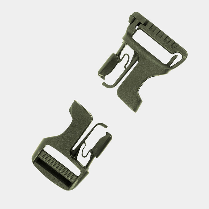El diseño de esta hebilla permite acoplarla a cualquier superficie MOLLE, ya sea cosida o cortada con láser. Es compatible con tiras de webbing de hasta 25 mm. Además, gracias a su diseño intercambiable no requiere una parte macho y otra hembra, lo que permite combinar las hebillas entre sí con facilidad.