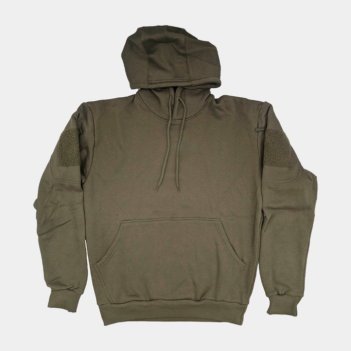 Sudadera táctica de la marca alemana MILTEC, además del bosillo central de tipo "bolsillo de canguro" cuenta además con dos bolsillos laterales con cremallera y zona de velcro en ambas mangas.