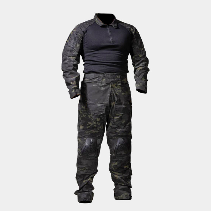 Los pantalones también disponen de rodilleras integradas y también en esta misma zona cuenta con cierres de velcro para un ajuste más ceñido a nuestro cuerpo. Ofreciéndonos así un diseño de perfil bajo. El pantalón de este uniforme táctico cuenta con multitud de bolsillos, bolsillos cargo de gran capacidad y bolsillos de cremallera en la parte posterior.