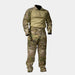 El traje táctico Blackbeard de la marca española Corso está fabricado en una mezcla de algodón y poliéster con camuflaje en boscoso pixelado español. Tiene un diseño que se adapta a cualquier escenario ya sean ejercicios en el campo o en zonas urbanas.