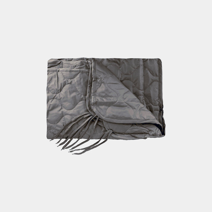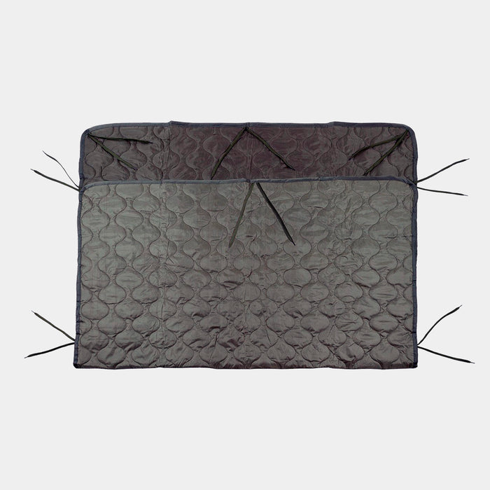A manta americana ou poncho liner da marca alemã Max Funchs (MFH) é fabricada em 100% poliéster e conta com um total de 16 cordões de fixação exterior, 2 em cada canto e outros 2 na parte média de cada lateral.