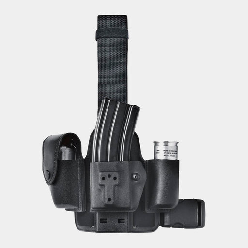 A pernera táctica 6004-27 - SINGLE STRAP LEG SHROUD WITH DROP FLEX ADAPTER (DFA) QLS 22 da marca americana Safariland é uma pernera táctica que inc...